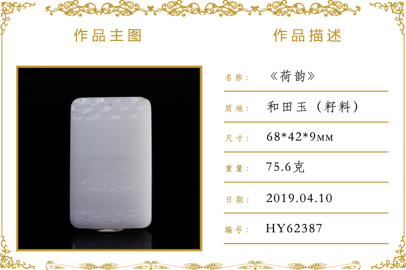 作品名称:荷韵(加工)。材质:和田玉(籽料)。尺寸:68*42*9mm。重量:75.6克
