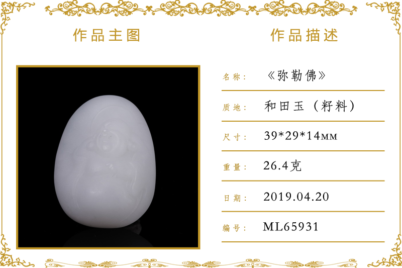 作品名称:弥勒佛(加工)。材质:和田玉(籽料)。尺寸:39*29*14mm。重量:26.4克