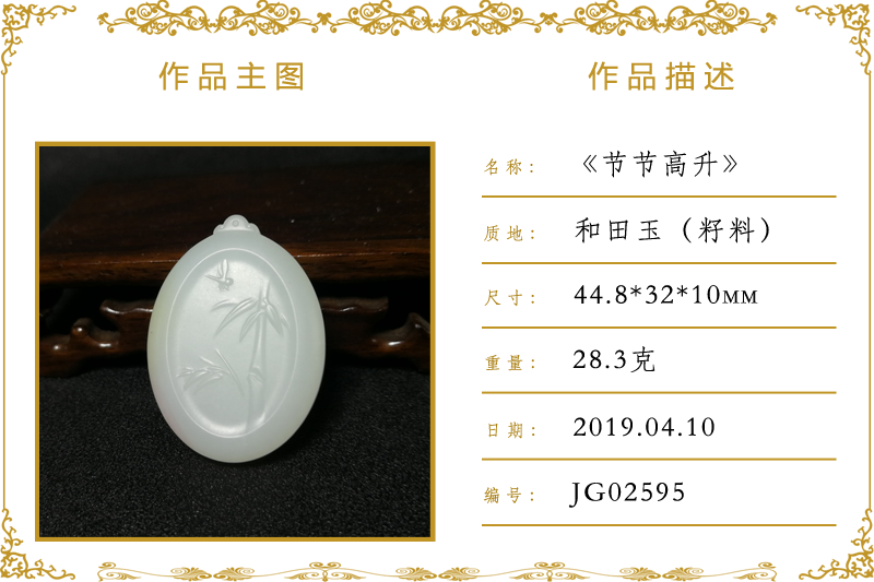作品名称:节节高升(加工)。材质:和田玉(籽料)。尺寸:44.8*32*10mm。重量:28.3克