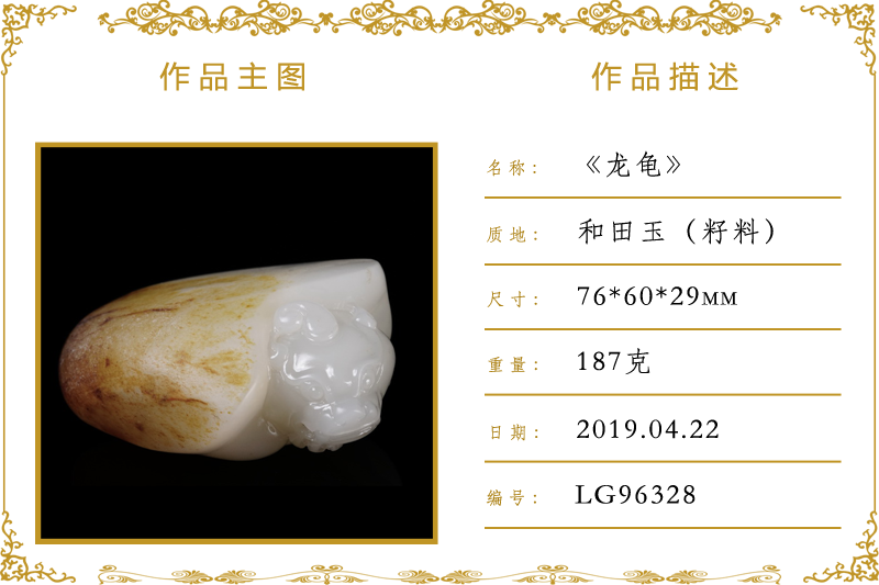 作品名称:龙龟(加工)。材质:和田玉(籽料)。尺寸:76*60*29mm。重量:187克