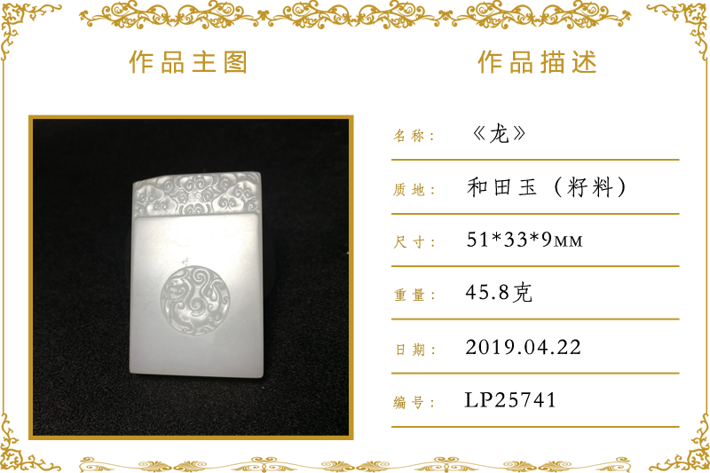 作品名称:龙(加工)。材质:和田玉(籽料)。尺寸:51*33*9mm。重量:45.8克