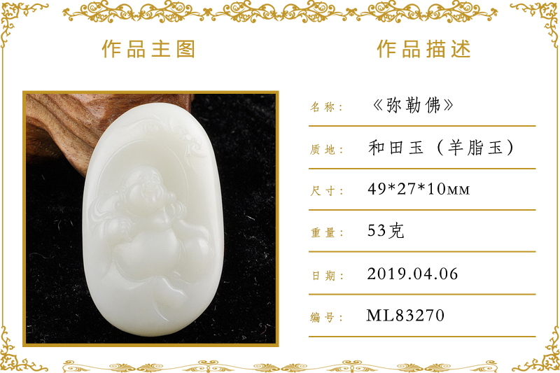 作品名称:弥勒佛(加工)。材质:和田玉(羊脂玉)。尺寸:49*27*10mm。重量:53克