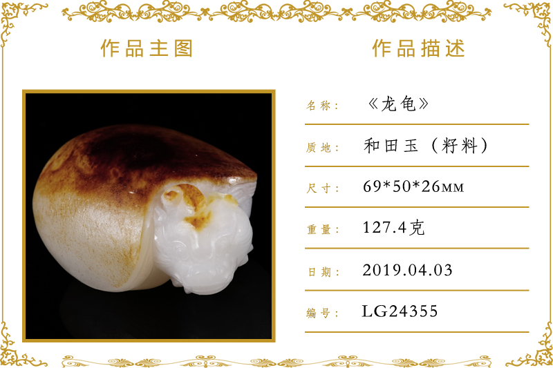 作品名称:龙龟(加工)。材质:和田玉(籽料)。尺寸:69*50*26mm。重量:127.4克